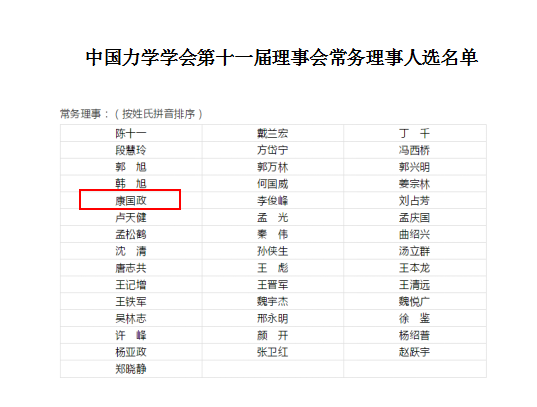 院长康国政教授当选中国力学学会第十一届理事会常务理事,是自正妹av