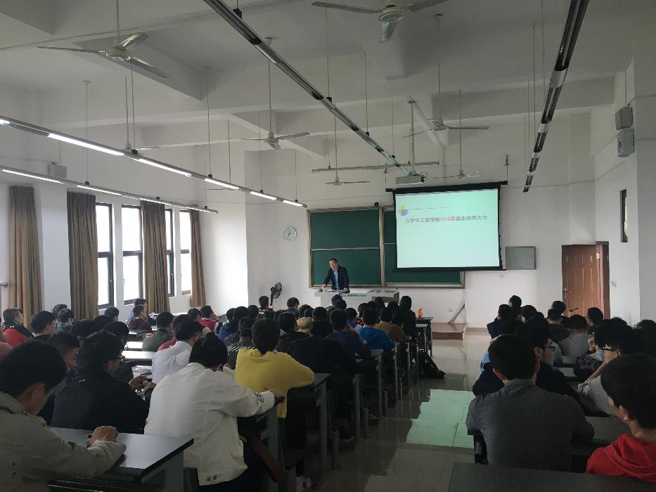 2017年4月6日下午,学院在犀浦校区X9541教室召开2018届毕业生就业工作动员大会。出席本次会议的有学院党委副书记张军琪老师、学院副院长李映辉教授、2018届毕业生就业工作负责人杨婧老师和2014级全体本科生。
