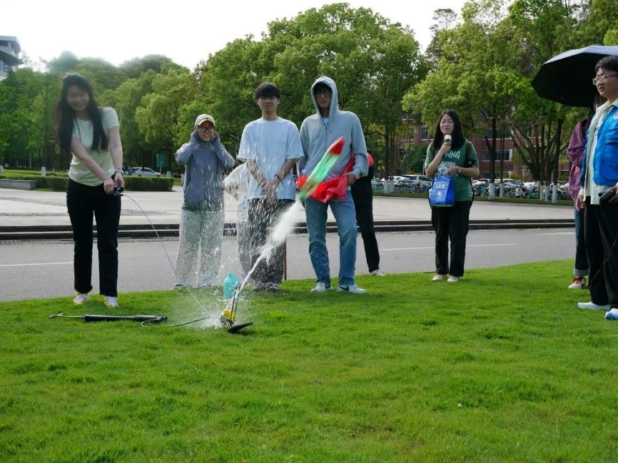 接下来,同学们移步交大校园,在开阔的校园草坪上体验水火箭项目,并参观交大南门、竢实扬华墙、张维雕像、正妹av