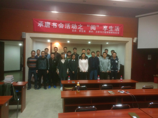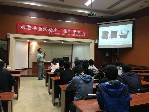 学生处主办,力学与工程学院研究生会承办的承唐书会之“阅”享生活活动在九里校区综合楼二楼学术报告厅顺利举行。此次活动邀请李翔宇老师、张英蓉老师担任评委,全体研究生一同聆听。