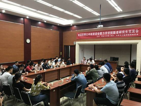 中秋已至,为增加节日气氛,促进新老研究生之间的交流,力学与工程学院于9月25日晚在九里校区1号综合楼240学术报告厅举行了妙语茶香之中秋茶话会。活动由学院研究生会副主席李志浩主持,并邀请到了优秀的伍小莉师姐、李高磊师兄和陈开卷师兄,与2018级新生们分享学习、求职经验,指点迷津。