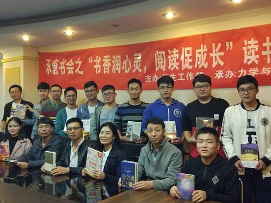 学生工作部主办,力学与工程学院承办的承唐书会之“书香润心灵,阅读促成长”读书交流会,在九里校区1号综合楼会议室顺利举行。此次活动由郭春燕同学和郑双星同学主持,并邀请了产业处综合管理科副科长周永生老师以及院团委副书记、研究生辅导员张英蓉老师担任嘉宾。