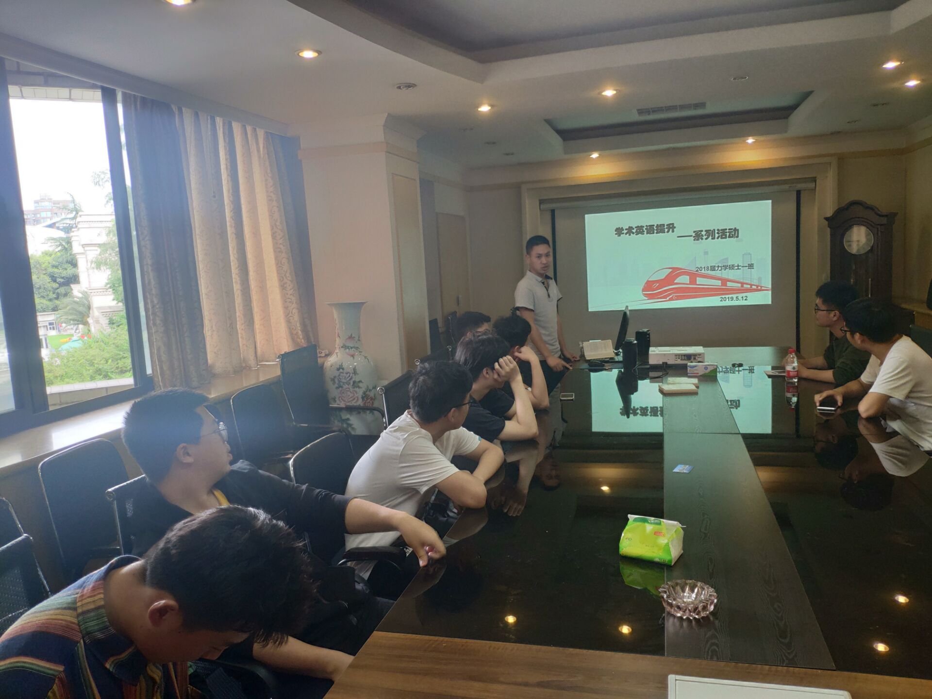 5月12日下午4时,2018级力学硕士一班在行政楼222学术报告厅举办了课题研究学术英语报告活动,旨在提升班级同学的学术英语素养,为将来同学们发表SCI等英文期刊论文做练习提升,激发同学们的学术英语学习热情。此次活动邀请了不同课题组的同学,分别结合各自研究方向及研究成果,用英语进行汇报,并与现场同学进行英文对答。活动由班长段忠英主持,各课题组同学积极参与。