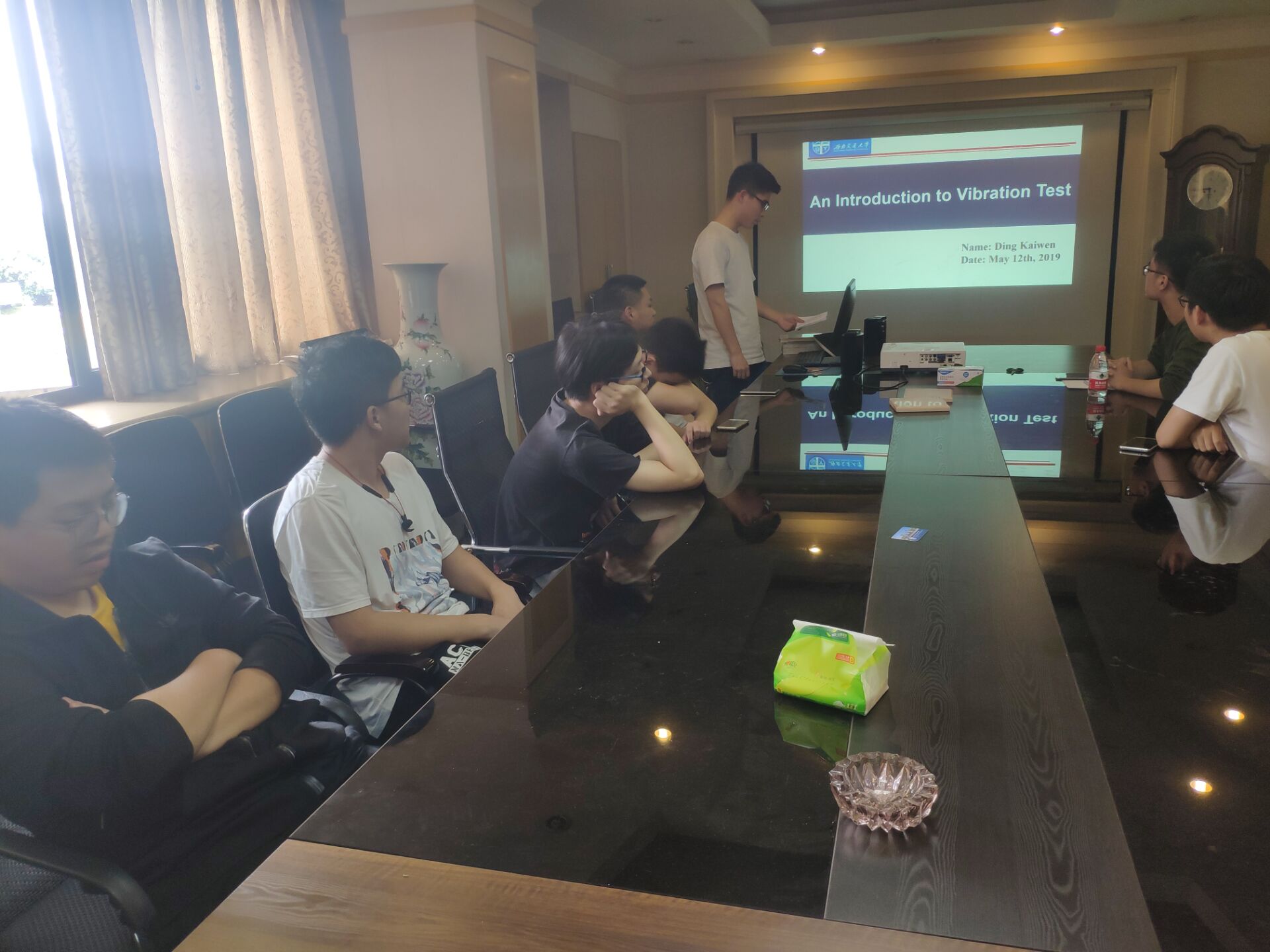 首先来自朱志武教授课题组的唐伟然同学为大家做出了冲击动力学的报告,为大家生动的讲解了子弹撞击的力学响应,并用流利的英文回答了同学们对于冲击试验设备的提问。接着,来自高芳清教授课题组的丁凯文同学结合自己的课题方向,讲述了振动测试的一系列仪器以及使用流程。两位同学流利的英文,自信而生动的表达展现了自己的学术英语素养,也得到了现场同学的认可,现场向这两名同学颁发经典阅读书籍作为鼓励。