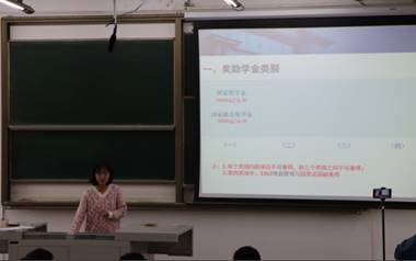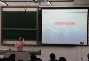 杨婧老师为同学们介绍了奖助学金的类别、评选规则及流程,让同学们清楚地了解学校奖助学金相关政策。同时,杨婧老师还为大家详细地介绍了集体荣誉和个人荣誉评选规则。最后,杨老师勉励同学们不断提升综合素质,注重积累,努力达到申请条件。