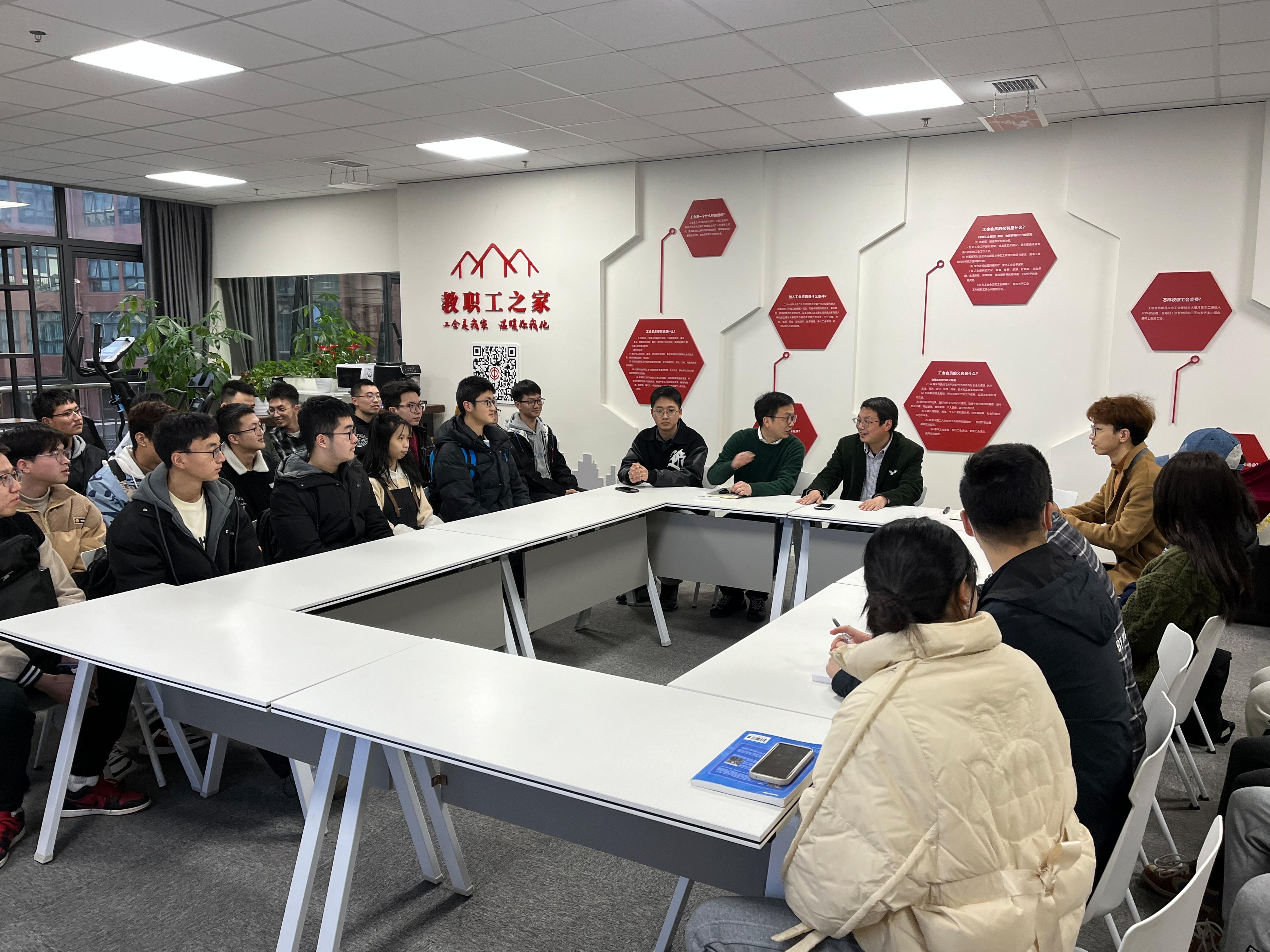2019级、2020级、2021级、2022级力学拔尖班“青春践行二十大”开学第一次联合主题班会在学院X30278会议室举行。学院执行院长、2019级力学拔尖班首席导师李翔宇教授和辅导员王彪、古定翱、安晟斐出席班会,活动由学院党委副书记、2019级力学拔尖班思想导师孔祥彬主持。