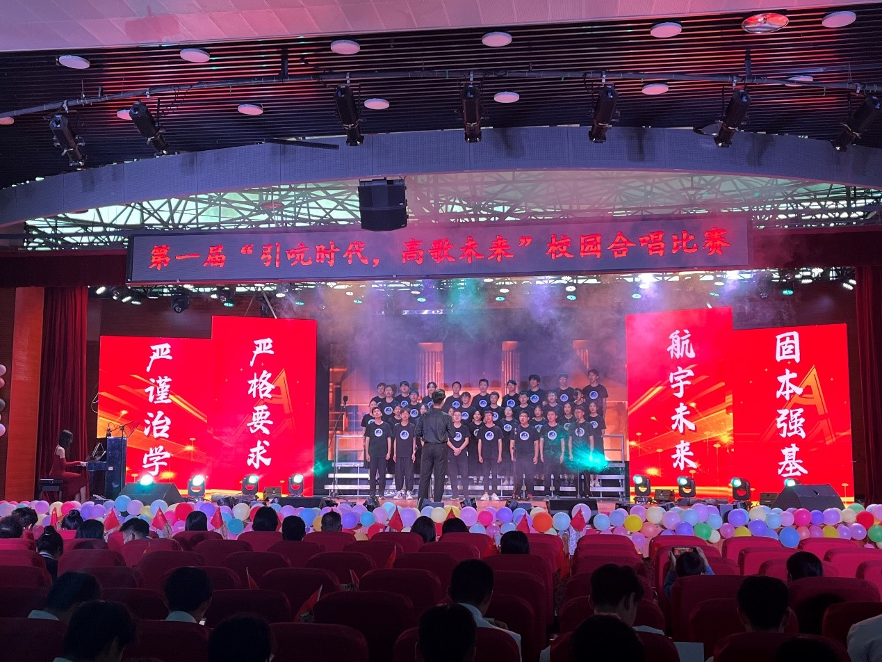 苹果合唱团和飞行2022-01班联合参加学校举办的第一届“引吭时代,高歌未来”校园合唱比赛,并荣获二等奖。