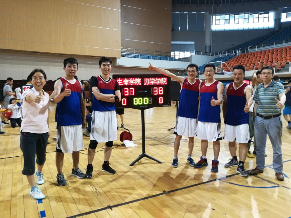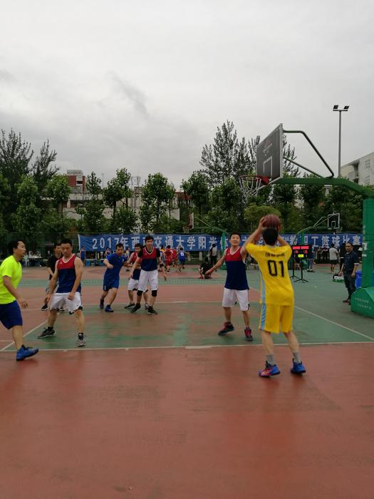 201766日在西南交大犀浦校区篮球场停摆十几年的教职工篮球赛终于拉开战幕。力学与工程学院在康国政院长和刘菲主席的组织和参与下组队参加了本赛事。我们被分在了C组,最后一场小组赛对阵电气学院队,两队实力相当比分交替上升,最后以25.523的微弱优势拿下了小组赛的第二场胜利。四场小组赛两胜两负名列小组第三。