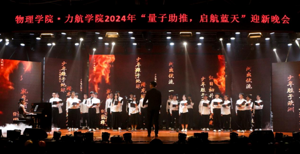 联合物理科学与技术学院,于11月22日晚在犀浦校区二食堂三楼举办“量子助推,启航蓝天”2024迎新晚会。两个学院的领导、老师及全体新生近500人齐聚一堂,共享这场视听盛宴。