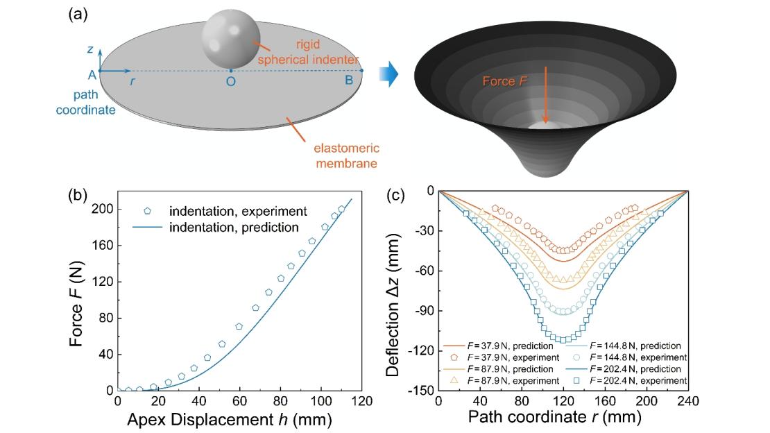 通过有限元移植与模拟,该模型成功预测了不同加载模式下软弹性体的超弹性变形(图2),验证了模型的预测能力。