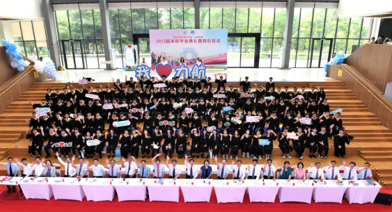 最后,学院学位评定委员会和教授委员会成员为2022届本科毕业生授予学位。授位仪式神圣而庄严,标志着大学生活圆满结束。拨穗正冠,代表稻穗或麦穗成熟,象征学子们已学有所成,即将展翅高飞,同时也寓意学子们在岁月的征程中行稳致远。
