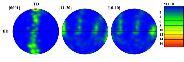 图2挤压AZ31镁合金显著的基面织构