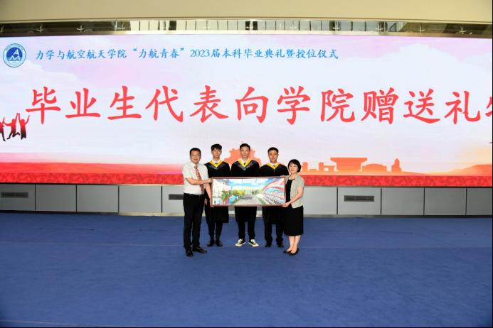 学院2023届毕业生代表向学院赠送礼物——手绘交大建筑,感谢学院的学校的培养。