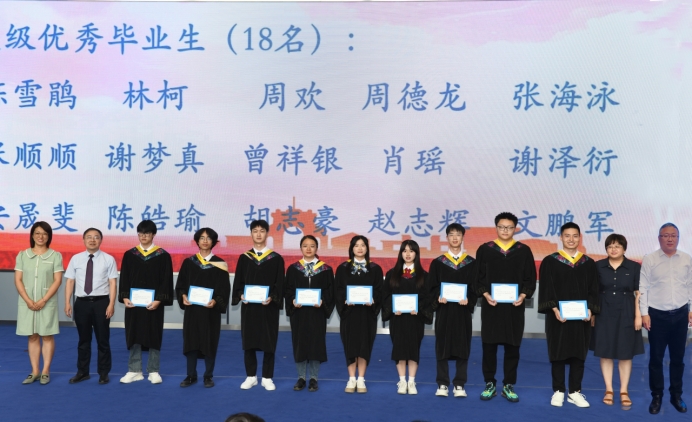 接下来,学院老师们分别为省级、校级优秀毕业生代表颁发证书。