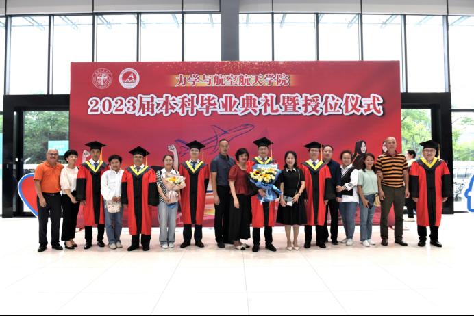 最后,学院学位评定委员会和教授委员会成员李翔宇、龚晖、李映辉、蒋晗、乐源、李鹏为2023届本科毕业生授予学位。拨穗正冠,象征学子们已学有所成,即将展翅高飞。授位委员们最后还和参加典礼的家长们合影留念。