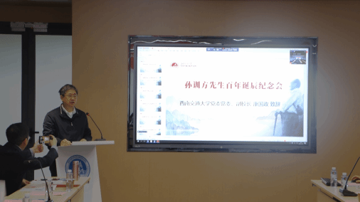 华东理工大学涂善东院士通过视频发表了讲话,深情回顾了他与孙训方先生的深厚渊源,有幸听了孙先生讲授的损伤和断裂力学课程,在孙先生身上获益良多,孙先生是他一生老师。涂院士还建议成立孙训方教育思想研究会以继续弘扬和发展孙训方的教学与科研精神。