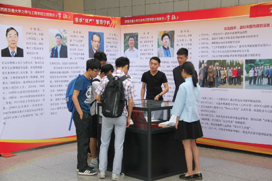 整个展览活动吸引了从校党委常委沈火明教授、院党委金建明书记,到力学学院学工组组长张军琪老师,再到力学的研究生、本科生等广大师生的目光。让交大师生们从展览中清晰地感受了力学学脉的传承过程,体会力学的风雕雨刻和薪火相传。