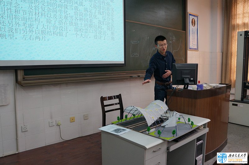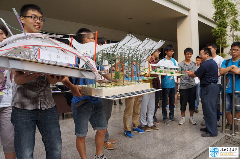 本次大赛主题为“铁路站台膜结构模型设计与制作”,历时2个多月,整个赛事得到了校实验室与设备管理处、学生处、教务处、校团委的大力支持、校社团联合会力学科技协会的全力协助、以及江苏东华测试技术股份有限公司倾情赞助。本届“力学创新实验大赛”西南交大、西华大学两校共有120多个队、500余名本科生报名参加,其中西南交大103个队,400余名学生参加,经作品方案评审确认83个队、近300名同学参赛,提交作品80余件;通过初赛评选出44个参赛队、44件作品进入决赛。涉及力学、土木、机械、交运、电气、建筑、材料、经管、艺术、茅以升学院等近200名同学进入决赛。决赛由膜结构风洞实验、作品展示、团队答辩与评委评审等方式进行,经过3个多小时的激烈争锋,来自D组的D-4号作品“大足站”最终获得评审团所有专家认可,获得特等奖,其他作品一等奖3件、二等奖8件、三等奖15件、9项单项奖以及若干项鼓励奖。