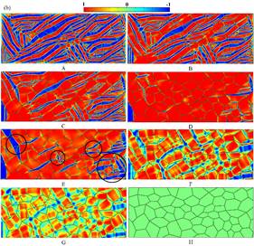 Fig. 3Phase field simulated results of the microstructure evolution in the processes of SE, OWSME andstress assisted TWSME of nanocrystalline NiTi SMAs with relatively large GS.
