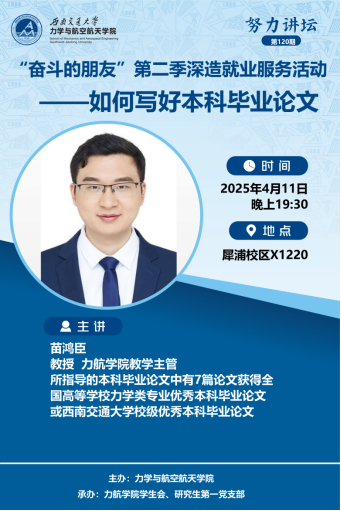 为加强对2025届本科毕业论文的管理,有力推进“奋斗的朋友”第二季深造就业服务活动,4月11日晚上19:30,学院邀请学院教学主管苗鸿臣教授为正妹av