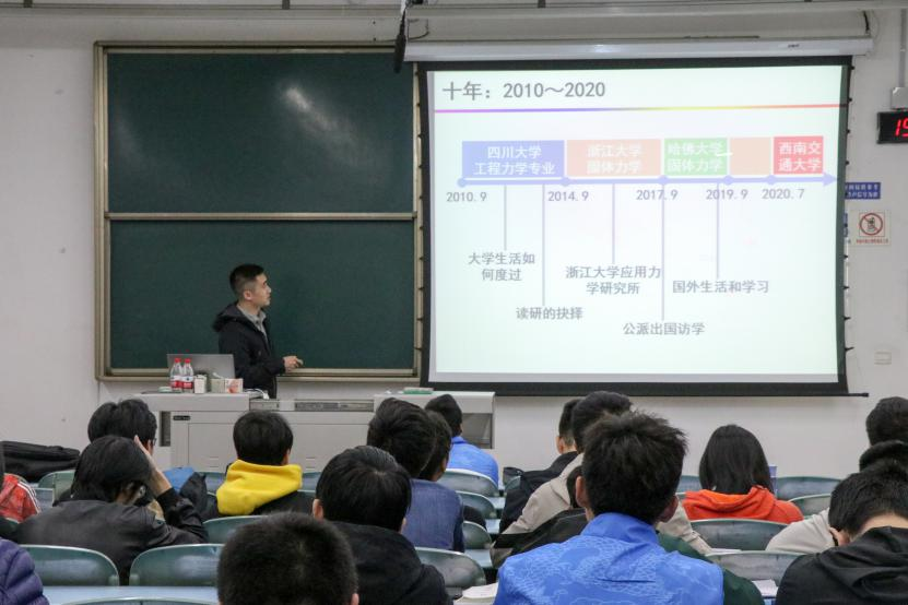 4月15日晚,力学学院“力行世界”留学沙龙活动第7期在犀浦校区X2330教室举办,本次沙龙邀请学院刘俊杰老师担任嘉宾分享自己的求学经历。