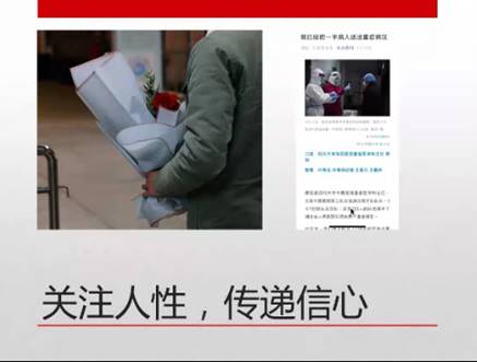 在讲座中,王鑫昕讲述了去武汉的历程、在武汉的工作情况,他表示媒体的职责在于传播信息、记录人事,关注人性、传递信心。在武汉的45天,他们报道了舍身忘我抗击疫情的医护人员、国家的积极作为,记录了大国的力量与微小的感动,传递了众志成城、共克时艰,抗疫全面胜利必胜的信心。