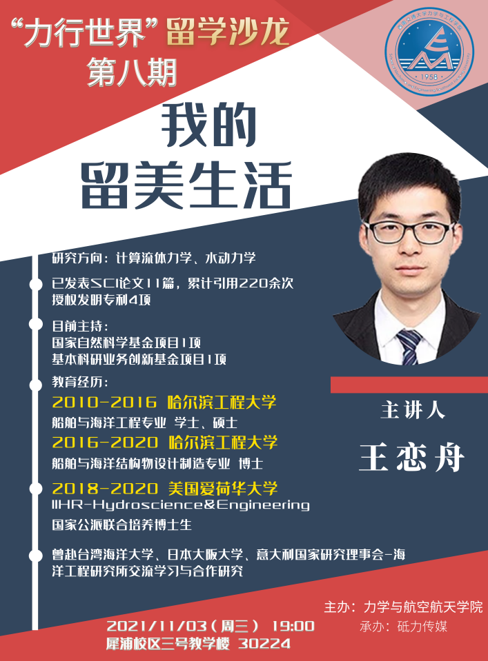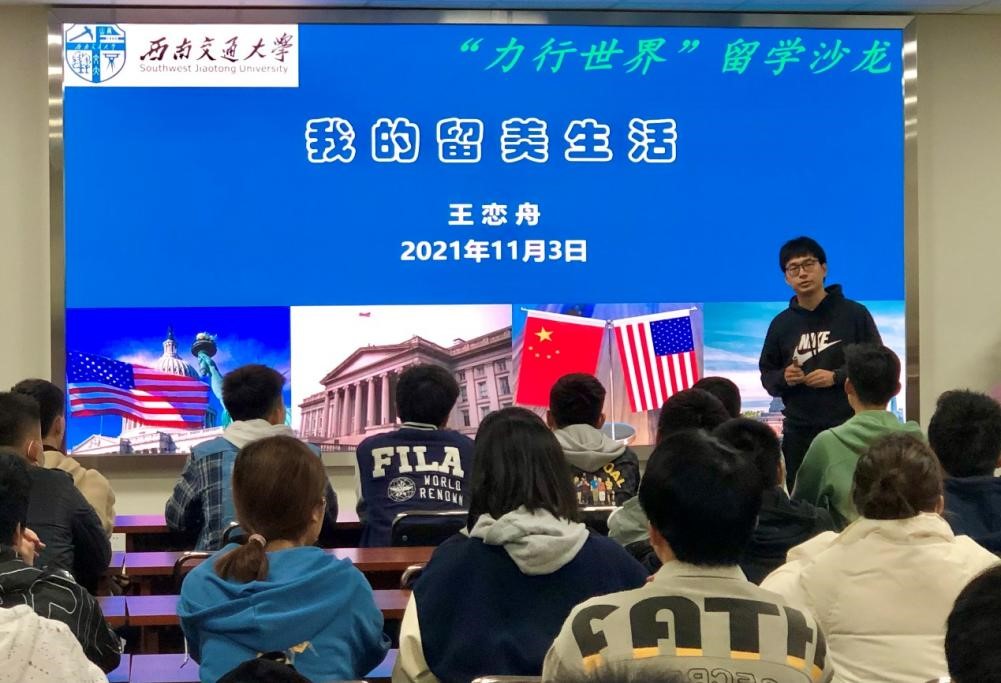 “力行世界”留学沙龙活动第八期活动在犀浦校区X30224会议室举办。本次沙龙邀请学院青年教师王恋舟老师担任主讲嘉宾,为同学们分享自己的留美生活。活动由张容华老师主持。