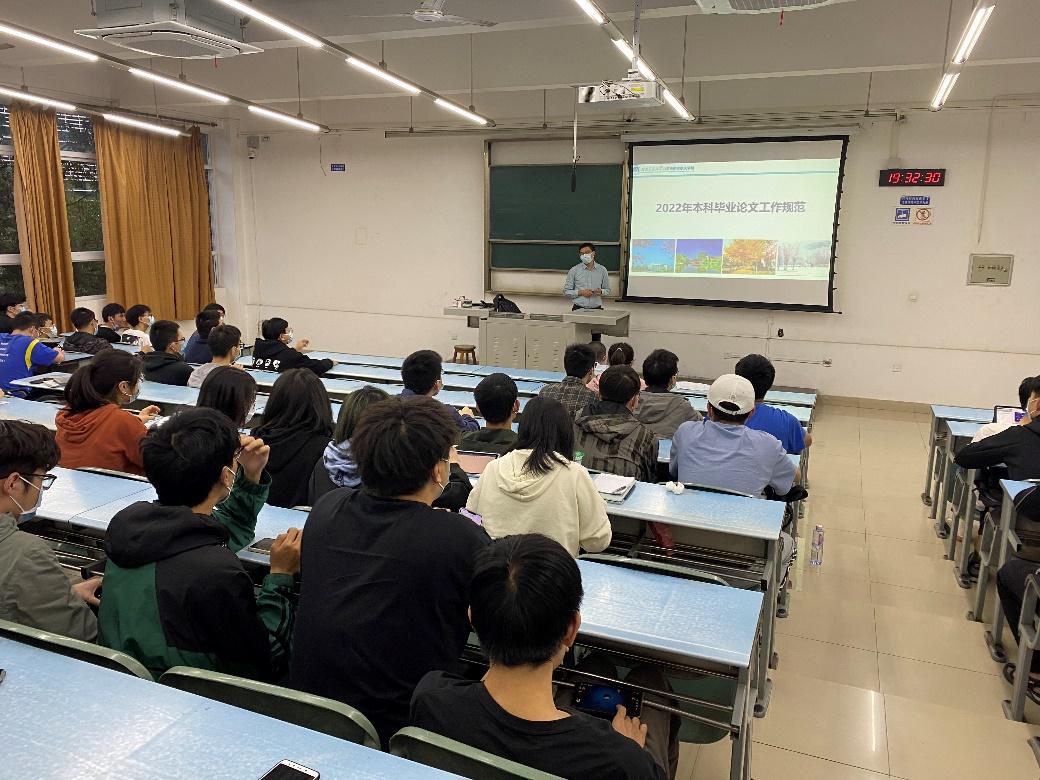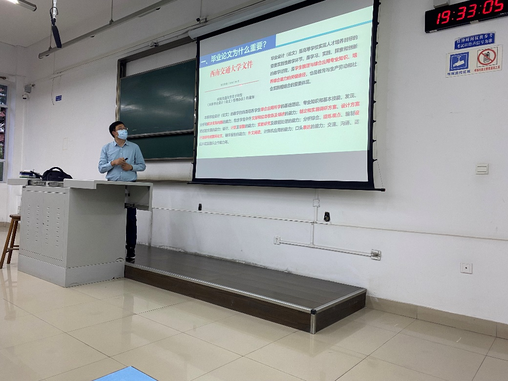 在犀浦校区X2214教室召开了2022年本科毕业论文格式规范宣讲会,宣讲会由苗鸿臣老师担任主讲,2018级全体本科生到会聆听学习。