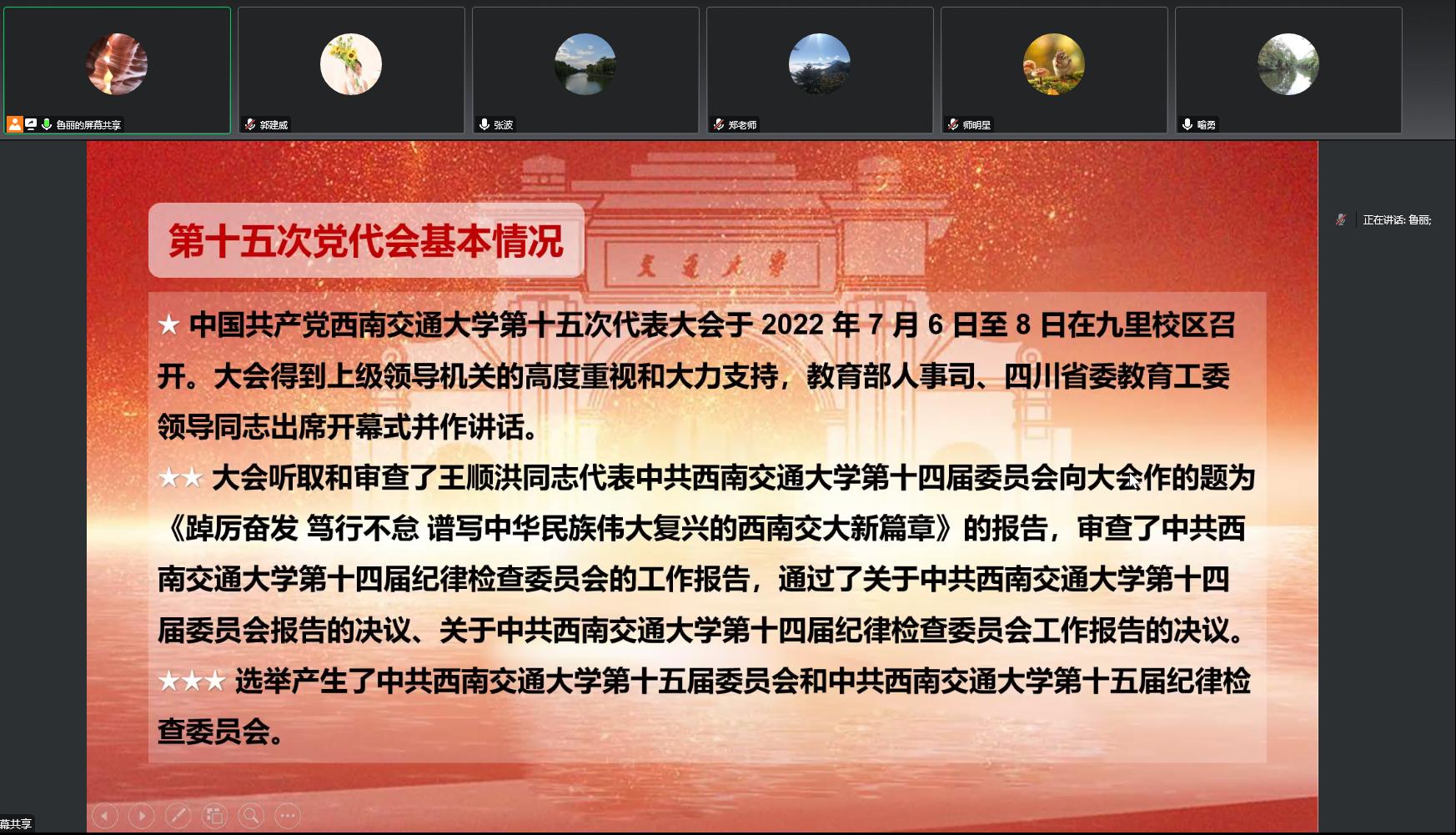 2022年9月23日中午,基础力学系党支部在线学习了四川省高校“优秀支部工作法”,重点聚焦四川师范大学数学科学学院教工第二党支部的“两标两线一圆心”工作法。