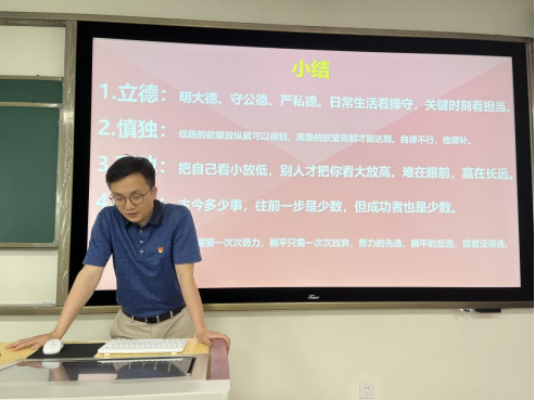 最后,孔老师以“立德、慎独、利他、担当、先锋”为总结,勉励全体党员同志应该明大德、守公德、严私德,胸怀大格局,有正气、朝气和骨气,希望大家能够做到天下大事,必作于细。