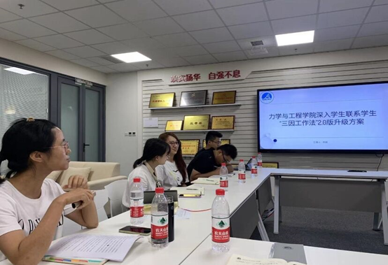 “力学学工2.0计划”是指在前期工作良好基础上,按照“整合力量、分类施策、一一对应、持之以恒、整体提升”的原则,整合“家长、专业教师、辅导员、朋辈学生、校友”等方面力量,根据不同年级、不同专业、不同学习状态、