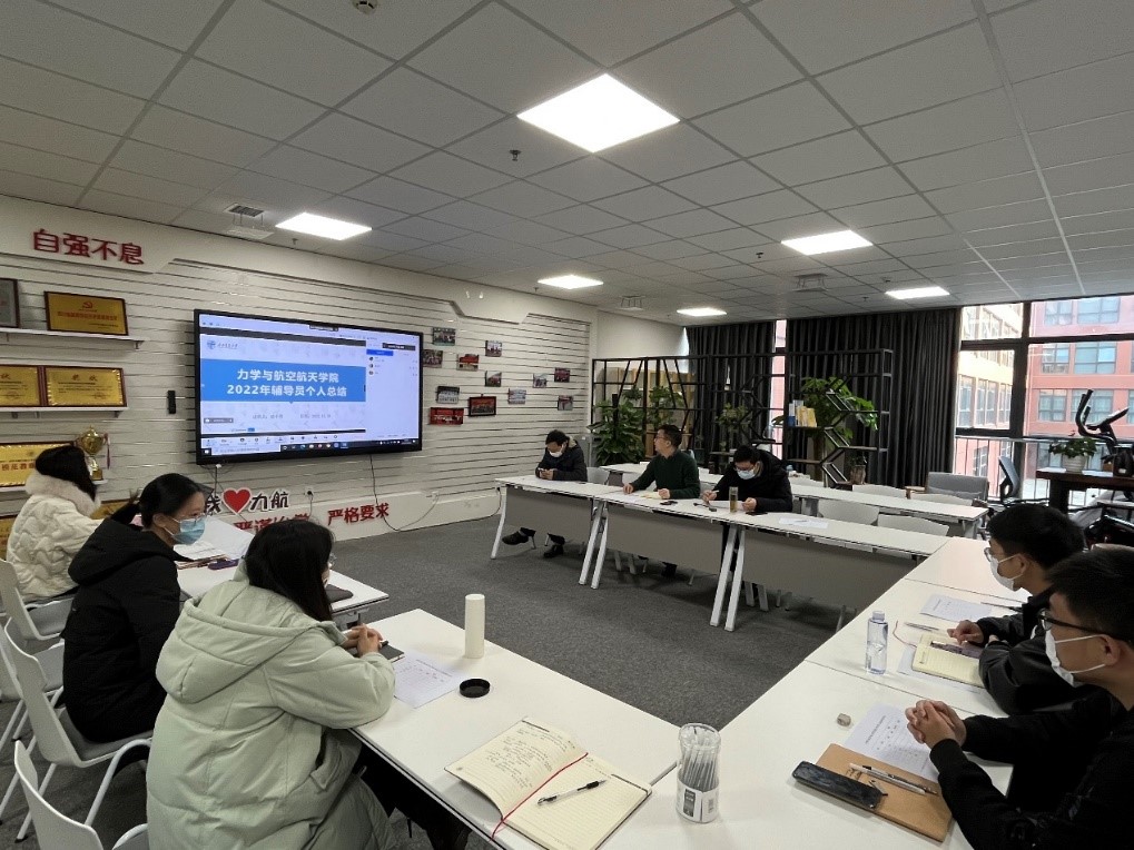 2022年度辅导员述职交流会在X30278会议室顺利举行。学院党委书记栗民、党委副书记孔祥彬、副院长阚前华、班导师代表苗鸿臣以及学生工作组杨婧、张容华、王彪、熊兰、古定翱、盛小芳、安晟斐参加了本次会议。会议由孔祥彬主持。