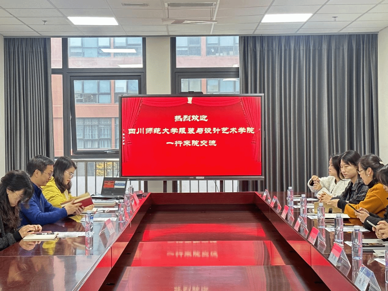 12月12日上午, 四川师范大学服装与设计艺术学院党委副书记李瑾一行来院调研交流,学院党委副书记孔祥彬、辅导员姜一菡、辅导员陈蕾、辅导员熊兰参加了本次交流座谈会。